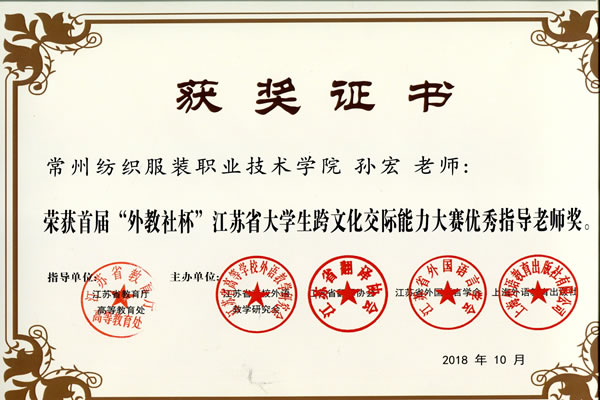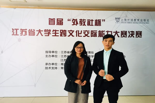 我校留学生PirmatovRakhmatullo(马小龙)在首届“外教社杯”江苏省大学生跨文化交际能力大赛中获得二等奖,指导老师孙宏、李丽明分获优秀指导教师奖。