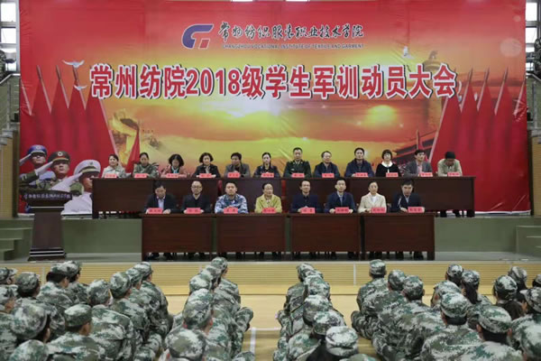 11月5日下午14:30,常州纺院2018级学生军训动员大会在体育馆隆重举行。学校党委书记蒋心亚、院长洪霄,党委副书记、纪委书记王顺明及副院长邓凯、赵玲珍、张文明、张震宇,驻常91079部队少校吴岸,学校各职能部门负责人、各二级学院领导以及全体承训官兵出席大会。会议由副院长张震宇主持。