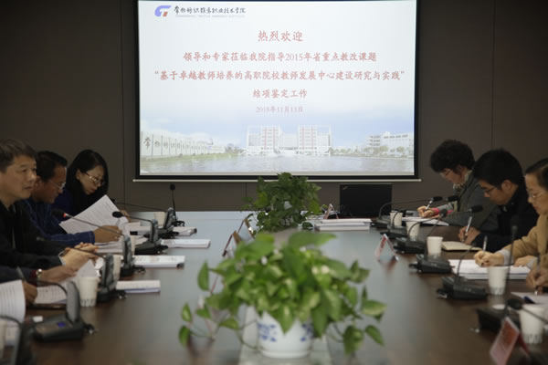 11月13日,我校2015年省重点教改课题“基于卓越教师培养的高职院校教师发展中心建设研究与实践”的结项鉴定会议在1646会议室召开。会议由江苏省教育厅高教处蔡华调研员主持,常州工程职业技术学院院长吴访升、江苏理工学院副院长陈光曙、常州工业职业技术学院高教所所长檀祝平、常州信息职业技术学院学工部部长骆建建和我校高教所专职研究员杨丽波等担任评审,学院副院长赵玲珍、服装学院副院长袁红萍等项目组负责人和主要成员,高职教育研究所所长成丙炎参会。