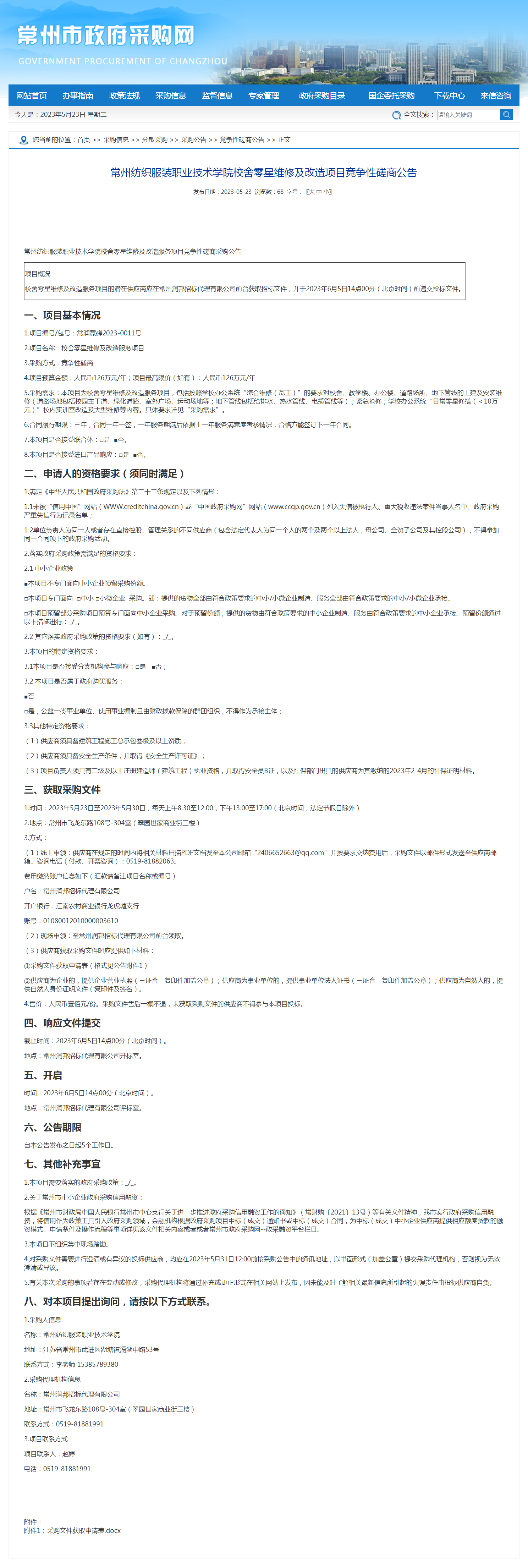 【采购公告】校舍零星维修及改造服务项目竞争性磋商采购公告