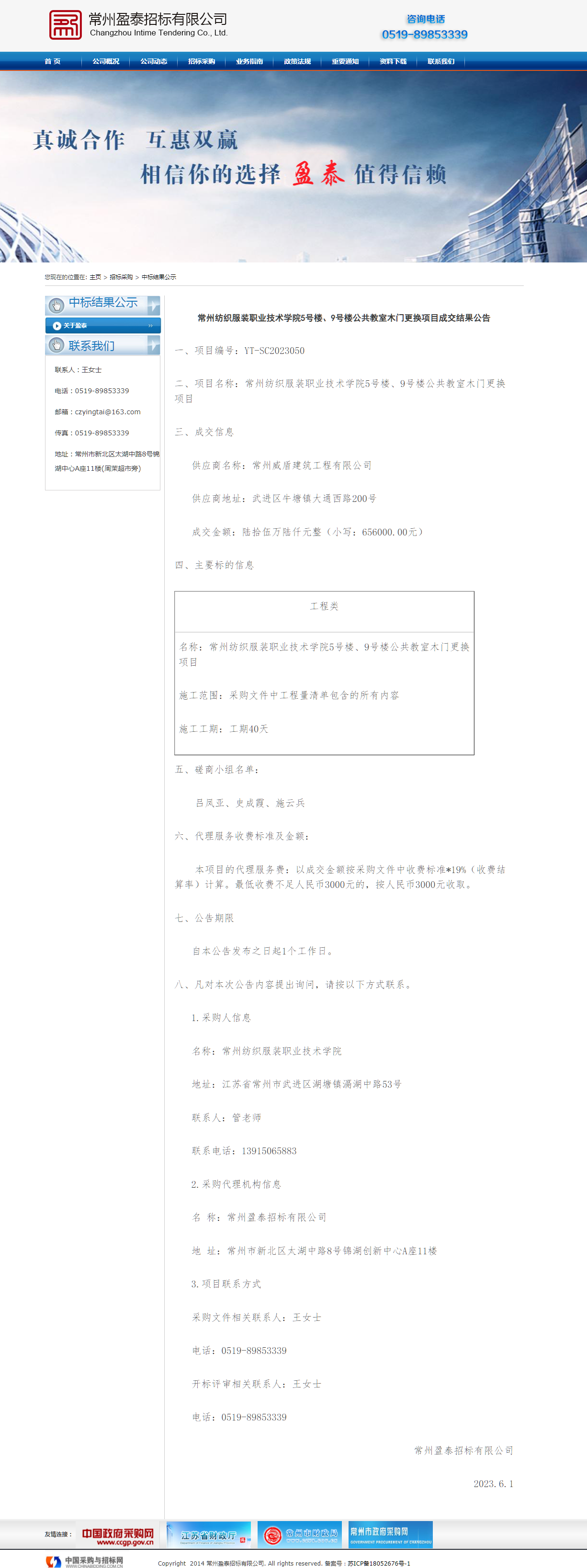 【成交公告】5号楼、9号楼公共教室木门更换项目成交结果公告