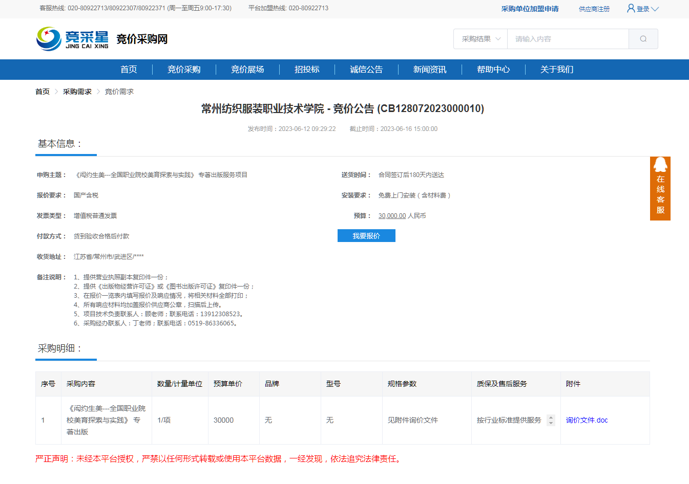 【采购公告】《闳约生美---全国职业院校美育探索与实践》 专著出版服务项目询价公告