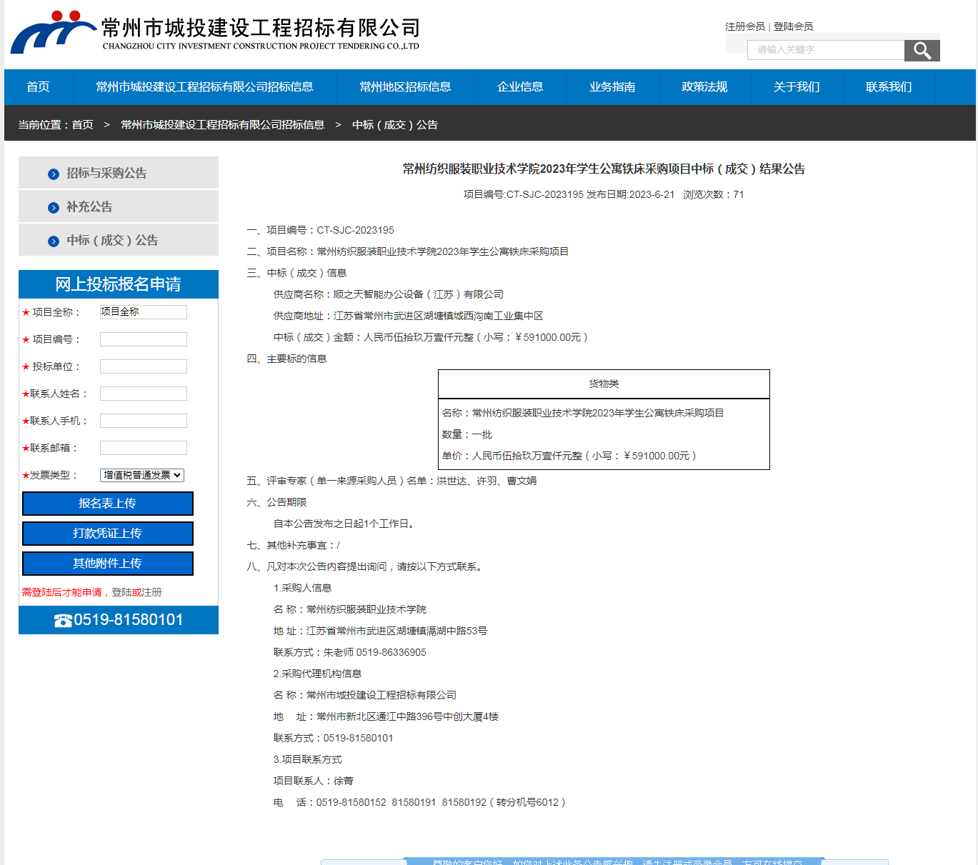 【成交公告】2023年学生公寓铁床采购项目成交结果公告
