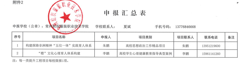 根据《省教育厅关于做好教育部 2024 年度高校思想政治工作质量提升综合改革与精品建设项目和第二批江苏高校思想政治工作质量提升工程有关建设项目申报工作的通知》(苏教社政函【2023】24号)要求,经项目团队申报,二级单位推荐,学校组织专家匿名评审,推荐以下2项,现予以公示,具体内容详见下表: