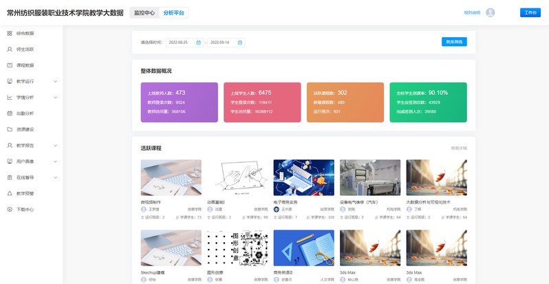 2. 助力教学搭建数据采集与管理平台通过先进的网络架构、广泛的互联感知、海量数据的汇聚存储,已实现了有线无线网络全覆盖,5G校园全覆盖,并建设了5G校园专网,配备高清互动、虚拟仿真、智能感知等装备,打造出具有良好体验的课堂教学环境。聚焦学校、专业、课程、教师、学生‘五个维度’,开展质量保证信息化平台建设,建立目标链和标准链,建设满足常规监控、日常管理、教学质量监控、自我诊改的动态化管理的数据采集与管理平台。开展了教学云平台建设,为学校课堂改革提供全面数据支撑,打开课堂教学状态‘黑箱’,将学生课前预习、课中参与、课后互动情况及时与学习目标达成度匹配反馈给学生。