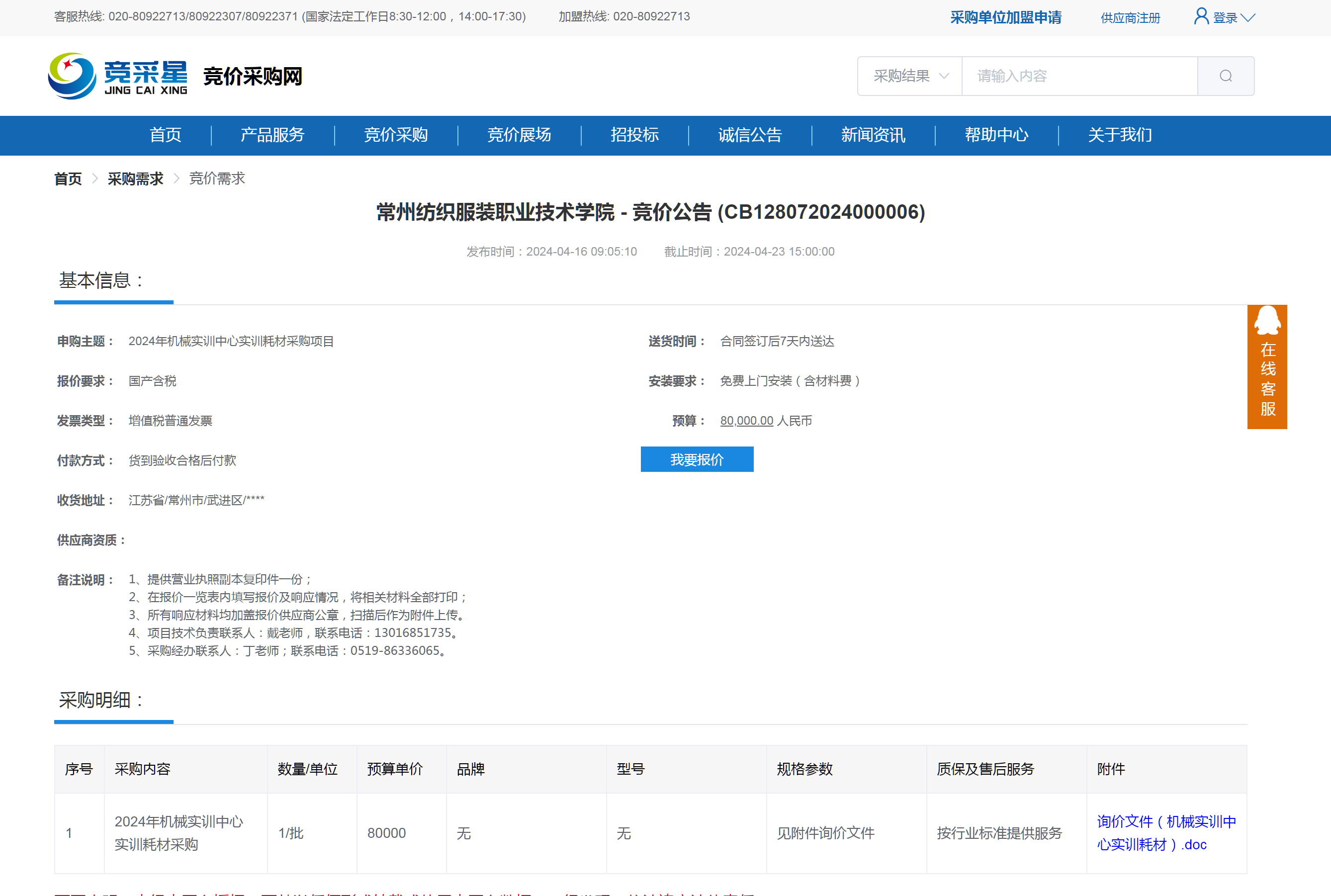 【采购公告】2024年机械实训中心实训耗材采购项目询价公告