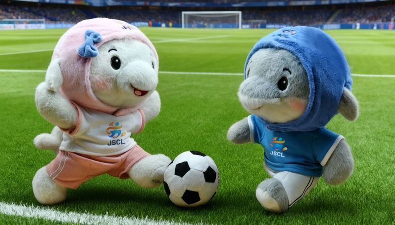 团队以国家一级保护动物、“微笑天使”长江江豚为原型,巧妙融入足球运动元素,通过专业的设计语言与细腻的情感表达,最终打造出集萌趣、活力与文化内涵于一身的“豚宝家族”IP形象及系列周边产品。