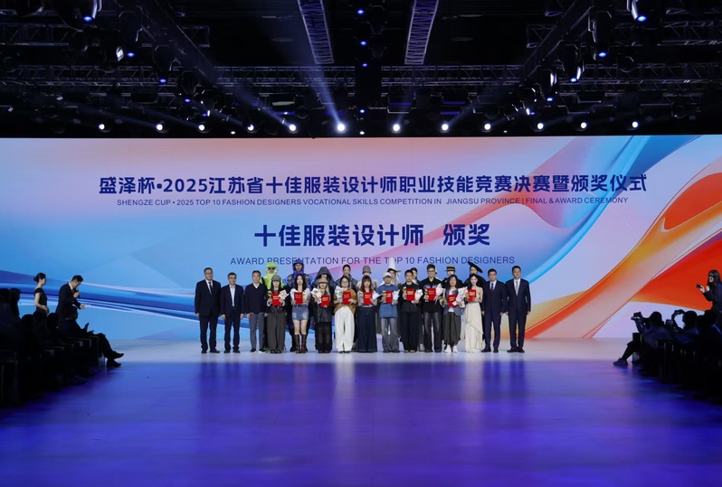 10月18日,“盛泽杯·2025江苏省十佳服装设计师职业技能竞赛决赛暨颁奖仪式”在绸都盛泽东方时尚发布厅隆重举行并圆满落幕。经过激烈角逐,我校服装与时尚设计学院王淑华老师的系列设计作品《“一方布”语》取得第二名的好成绩,并荣获“2025江苏省十佳服装设计师”称号。