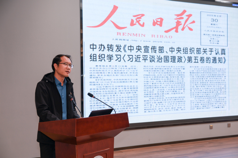 为做好《习近平谈治国理政》第五卷学习教育工作,持续营造学习宣传的浓厚氛围,更加深入学习贯彻习近平新时代中国特色社会主义思想,2025年10月21日上午,我校在领秀展厅召开党委理论学习中心组学习(扩大)会。学校党委班子成员、全体中层干部参加会议,党委书记林刚主持会议。
